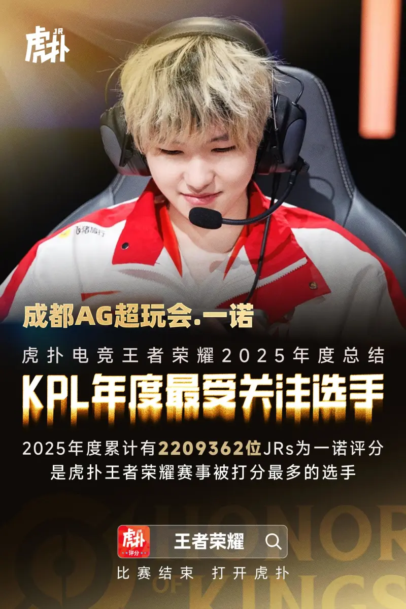 2025賽年共有2209362位JRs為一諾打分,是撲最王者榮耀賽事中被打分人數(shù)最多的選手