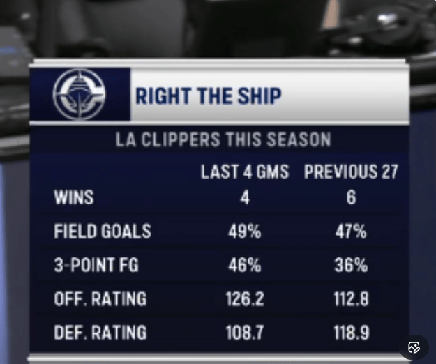 賽中,效率轉(zhuǎn)播方曬出快船過去四場和之前27場的提升數(shù)據(jù)對比: